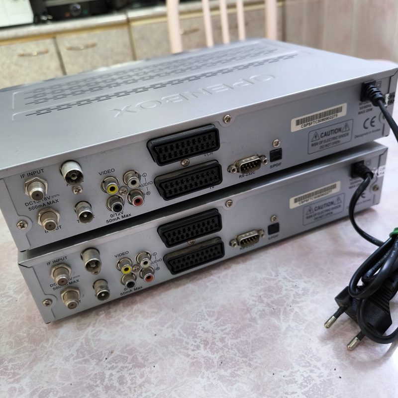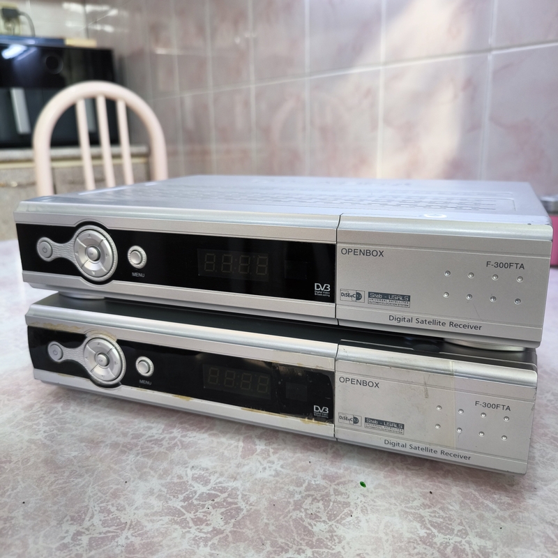 Спутниковый ресивер Openbox F-300FTA — DVB, DiSEqC, USALS Характеристики: Модель: Openbox F-300FTA Тип: Digital Satellite Receiver Стандарт: DVB Поддержка DiSEqC 1.2 и Stab-USALS (автоматическое позиционирование тарелки) Разъёмы сзади: IF INPUT (вход с тарелки), VIDEO + AUDIO (тюльпаны), 2× SCART (TV + VCR), RS-232C, S/PDIF Питание: 90–250В, 50/60Гц, макс. 25Вт (универсальное) Разработано в Корее Цвет: серебристый Комплектация: Пульт ДУ Кабель питания Состояние: хорошее. Подойдёт: — Для приёма спутникового ТВ (Hotbird, ABS, Yamal и др.) — Поддерживает моторизованные тарелки (USALS/DiSEqC) — Подключение к любому телевизору через SCART или тюльпаны